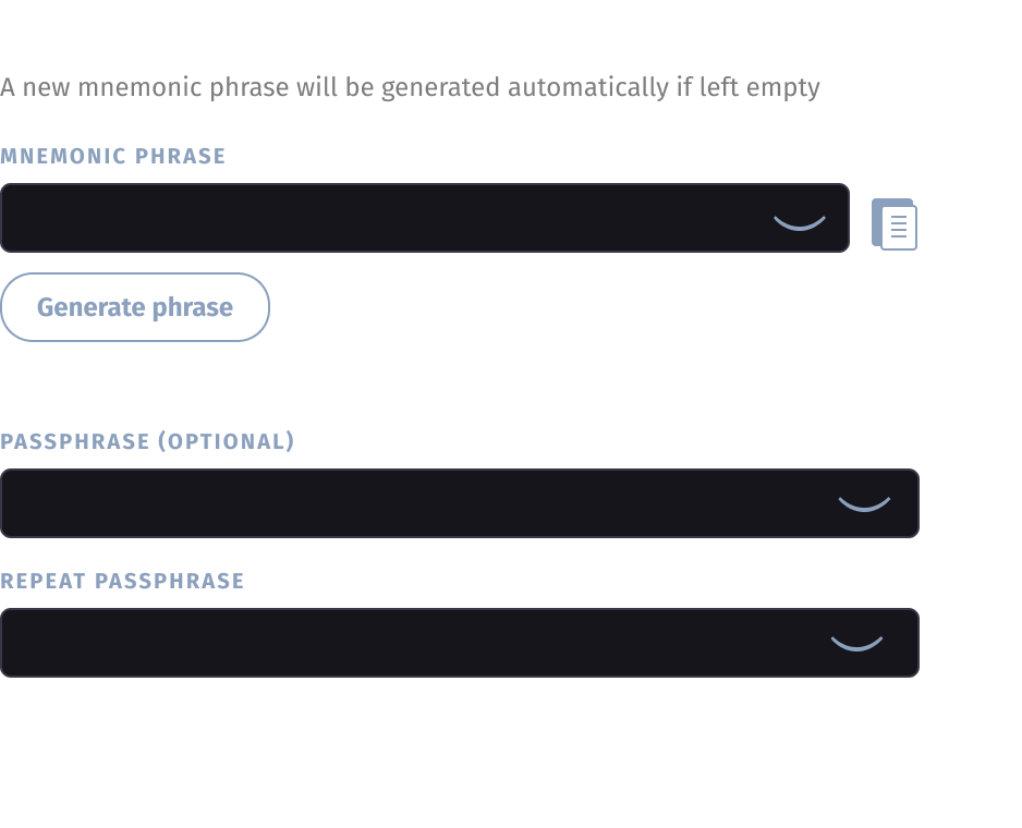 A new mnemonic phrase will be generated automatically if left empty