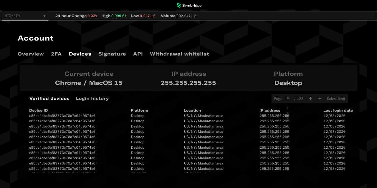 Symbridge digital asset exchange built specifically for future-minded traders. My goal was to create end-to-end design from scratch and apply corporate branding, which was on parallel track.